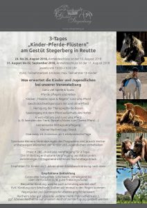 3 erlebnisreiche Tage für Kinder ab 5 Jahren finden vom 24. bis 26. August 2018 und vom 31. August bis 02. September am Gestüt Stegerberg statt.